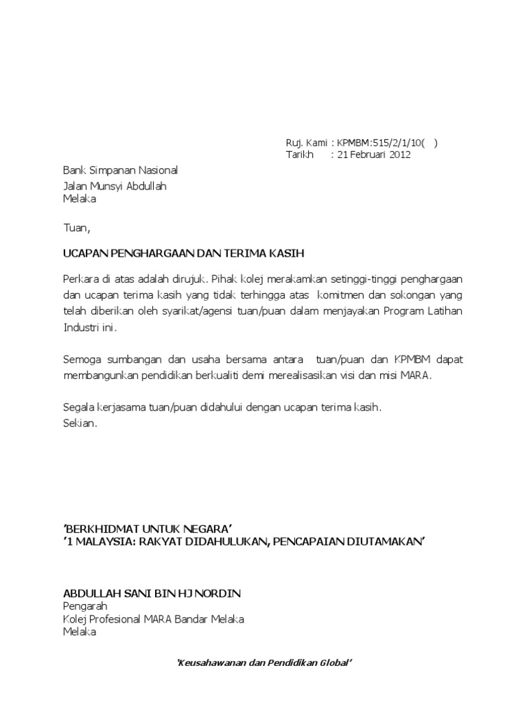 Contoh Surat Penghargaan Kepada Syarikat Terbaru Letter Website